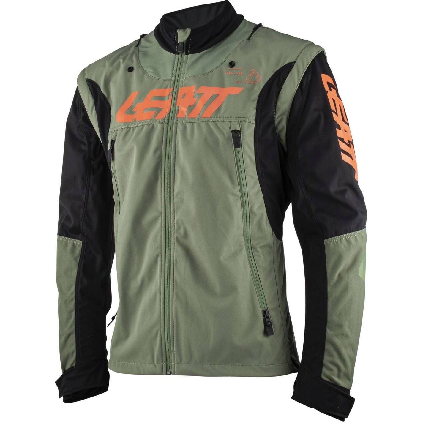 The abrasion and cut resistant brush guard protective film reinforce an already durable elbow and shoulder panel made of 1000D nylon. The tailored waist-length fit is designed to work with or without body armor, and the collar can accommodate a Leatt neck brace if worn.
